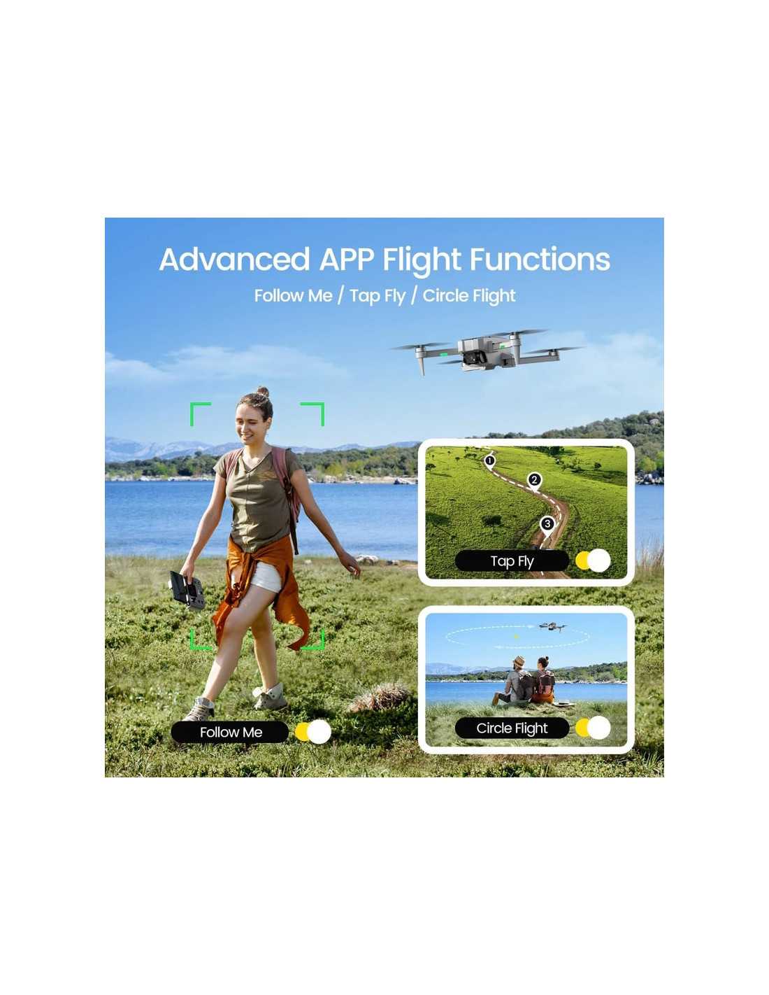 - Circular Flight: Få dronen til at cirkle perfekt omkring et valgt motiv.