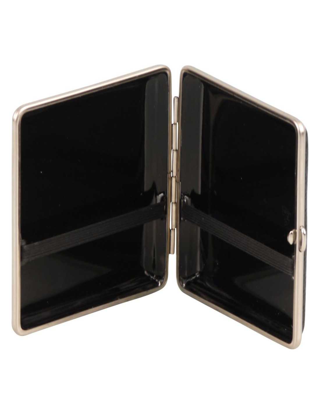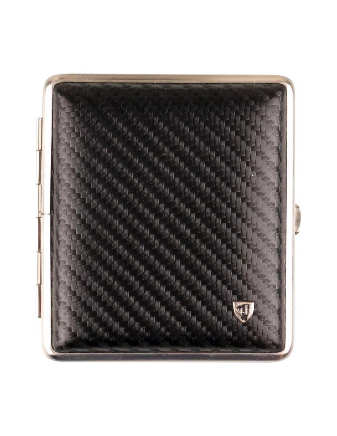 Vom Hofe cigaret etui i ægte læder i sort og sølv med plads til 18 cigaretter. Vom Hofe producerer eksklusive cigaret luksus etuier i de bedste materialer fra deres hovedsæde i Tyskland.