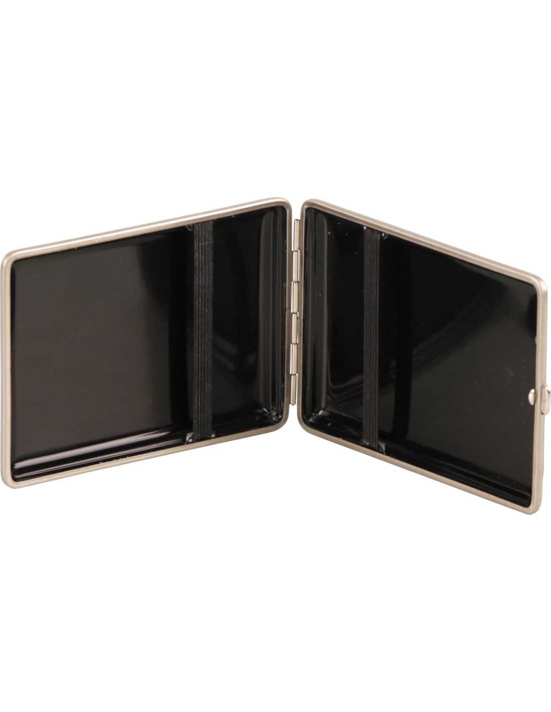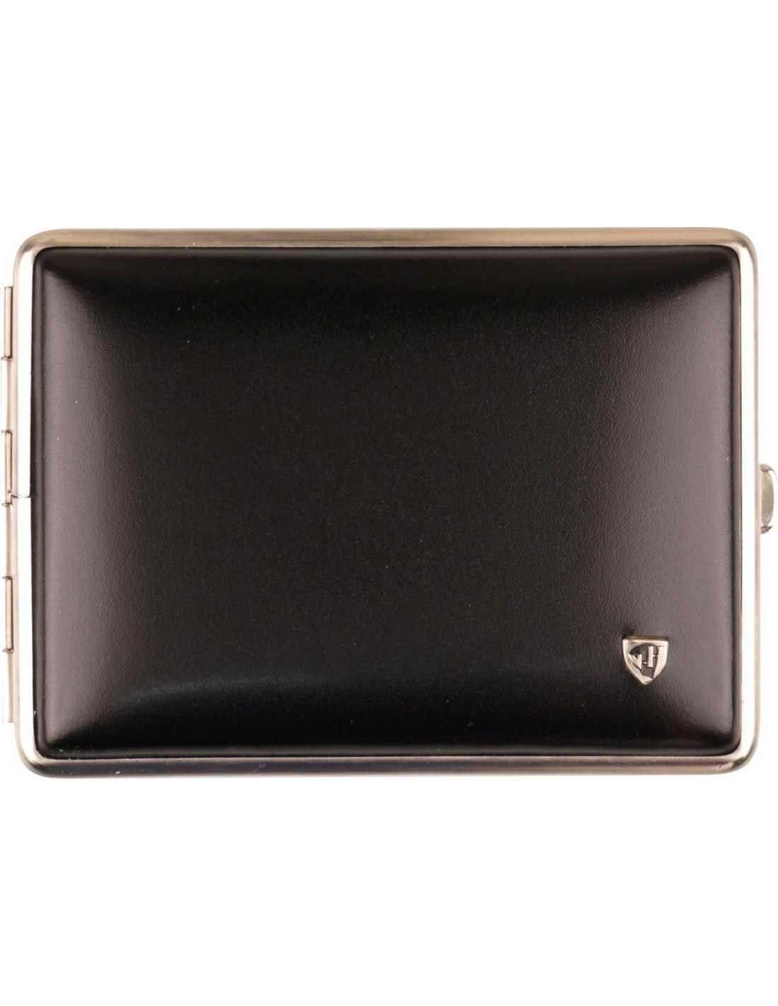 Vom Hofe cigaret etui i ægte læder i sort og sølv med plads til 18 cigaretter. Vom Hofe producerer eksklusive cigaret luksus etuier i de bedste materialer fra deres hovedsæde i Tyskland.