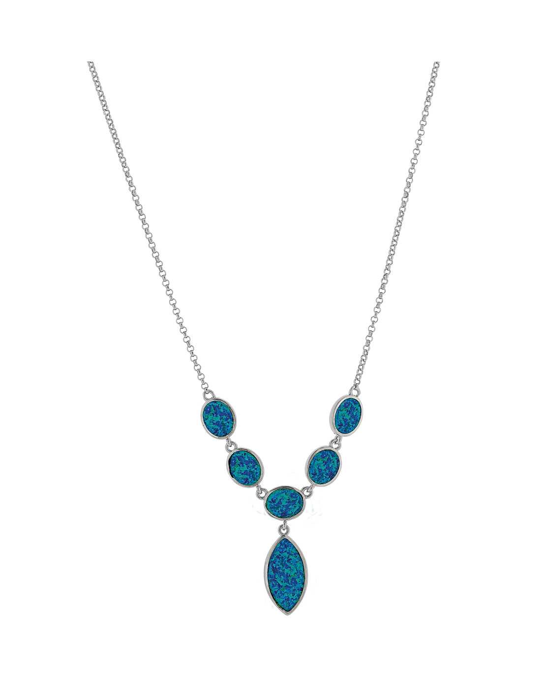 Athena - Opal halskæde med blå opal sten, 925 Sterling sølv & rhodium belægning.
